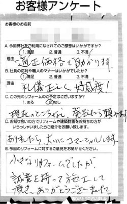 ■サッシ入替工事をしていただいたお客様からアンケートが届きましたのでご紹介します。