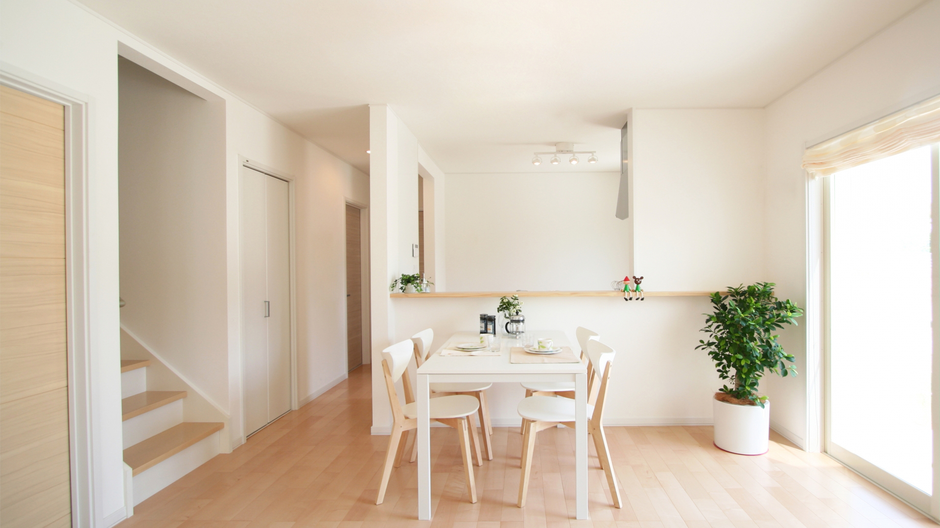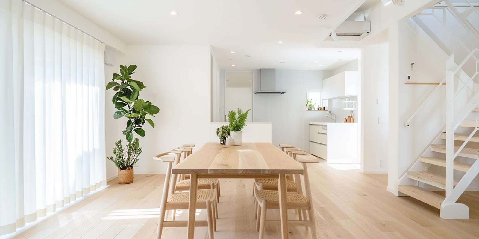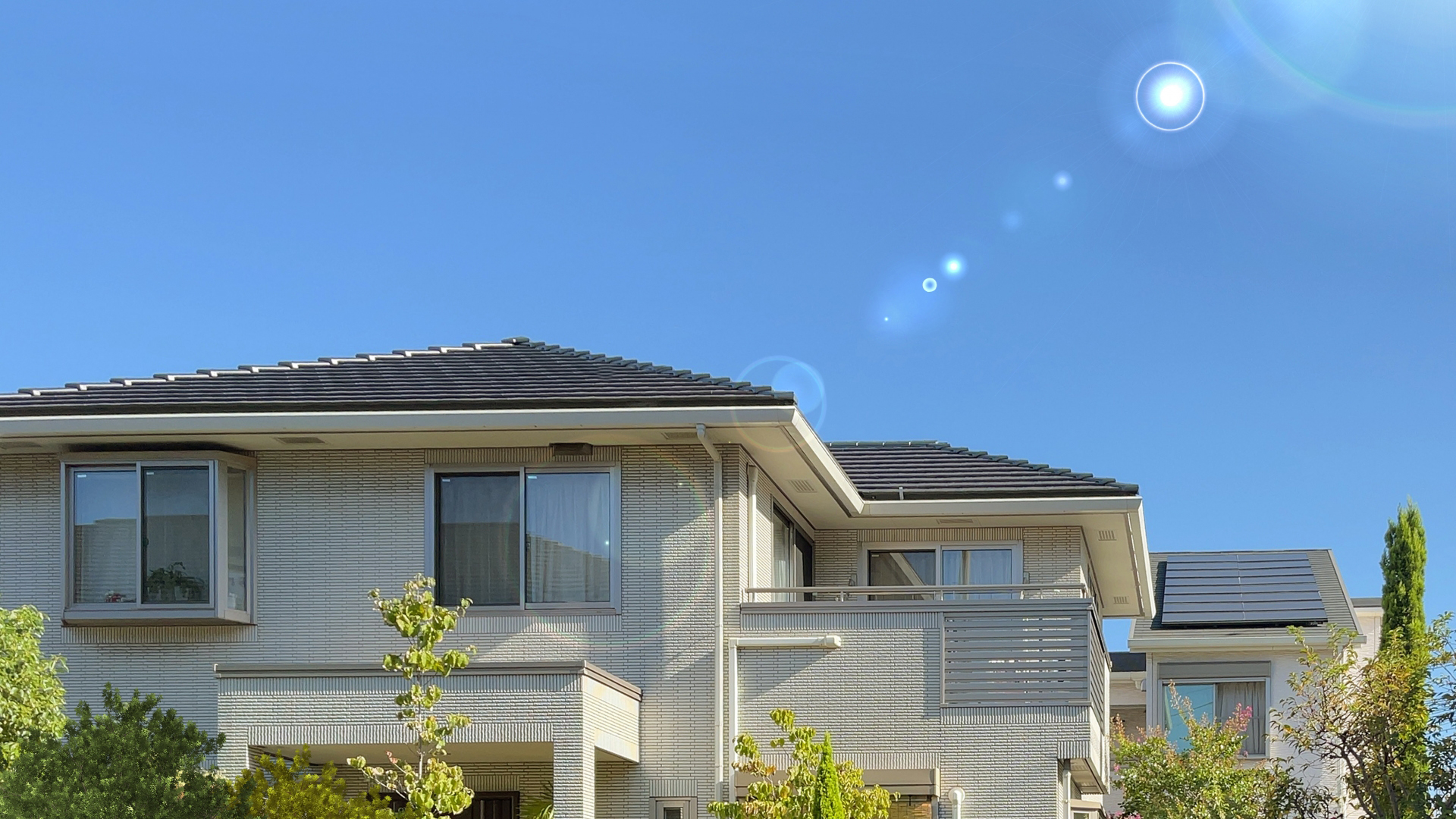 鉄骨外断熱住宅です。基礎から屋根まですっぽりと断熱材で覆うことで高い断熱効果と快適な居住空間を作ります。