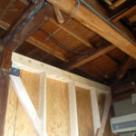 間口が狭いため、杭打ち機は日本に1台しかない手造りの重機にて行いました。