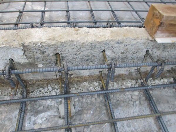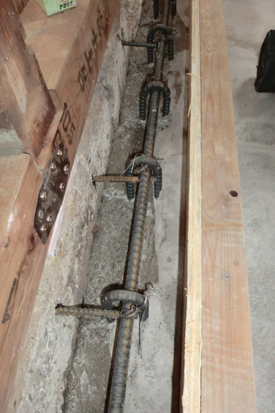 鉄筋を配置し古い基礎と一体化させます。