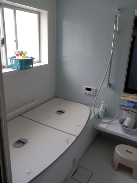 室内に給湯器がある古いタイプの浴室で冬は寒く、脱衣所からの段差も高く、ご高齢のお施主様には使いづらかった浴室をシステムバスで明るく冬場も暖かい浴室にリフォームしました。