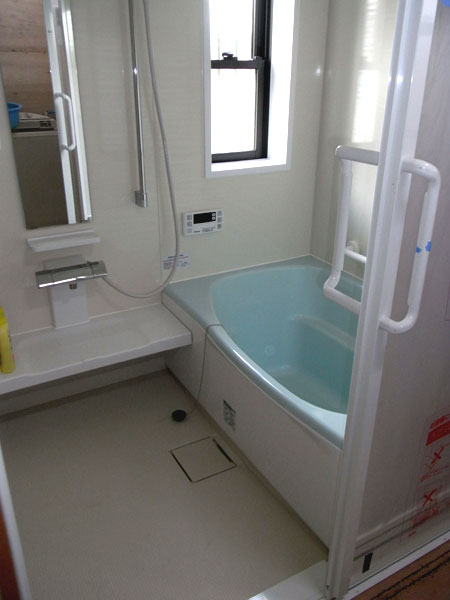 浴室リフォーム 横浜市栄区 2026/03/4 最終更新日時 : 2026/03/4 ziusadmin タイル張浴室からユニットバスへのリフォームです。入口は折戸が一般的ですがご高齢者の方に使いやすいオプションの引き戸をお取り付けしました。 Before(施工前) After(施工後)