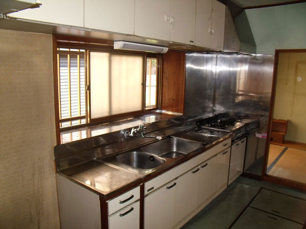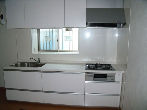明るい白のシステムキッチンに入れ替えました。引き出しタイプなので収納力も上がり、出し入れもしやすくなりました。