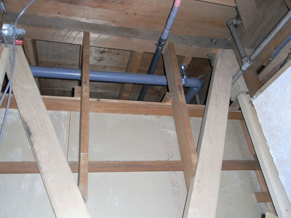 スジカイと呼ばれる斜めの木材を入れることで耐震性を上げました。