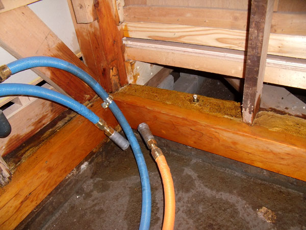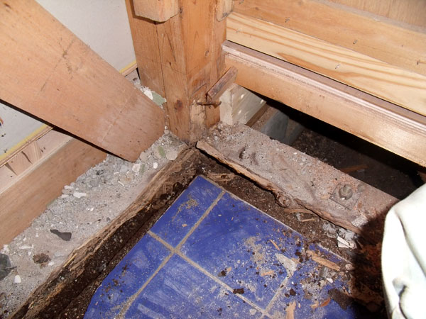 浴室解体後の土台、柱が傷んでいたので補修をしながらリフォームしました。
