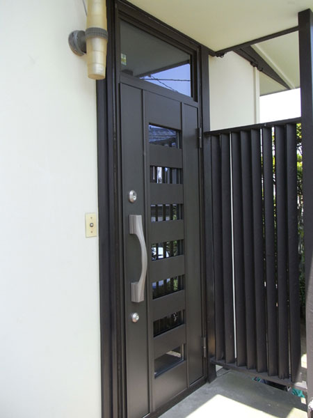 玄関扉の入替事例です。カバー工法の為工期は一日です。