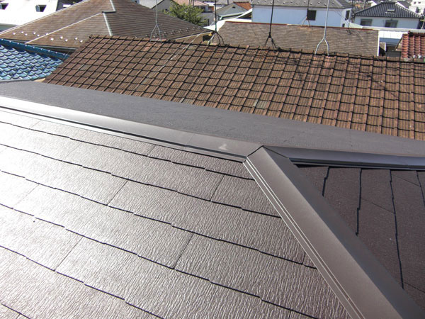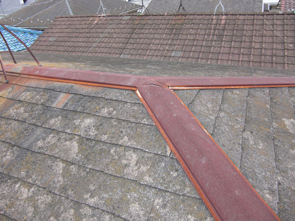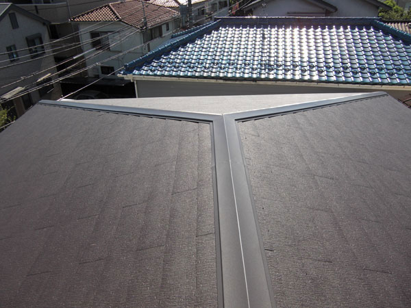 屋根葺き替えリフォーム 横浜市鶴見区 2026/03/12 最終更新日時 : 2026/03/12 ziusadmin スレート屋根の葺き替え例です。屋根材の劣化、鉄板部分のさびがはげしかったので既存屋根材をはがし合板を重ね貼して、新規にスレートを葺き直しました。 Before(施工前) After(施工後)