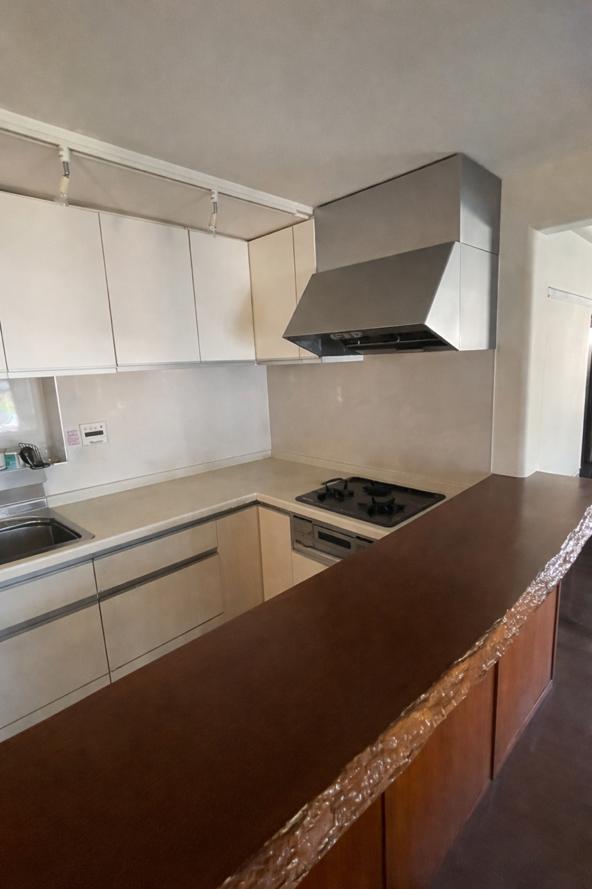 キッチンリフォーム 2026/04/24 最終更新日時 : 2026/04/24 ziusadmin キッチンの入替工事です。壁に向いてたキッチンをベニンシュラ型に交換し、開放感のあるキッチンにしました。 総額200万円 Before(施工前) After(施工後)