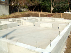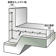 基礎は、建物の荷重を地盤に伝える重要な部分です。当社の基礎は「ベタ基礎工法」です。これは、建物の床下全面を鉄筋コンクリートで覆い、建物にかかる荷重を「面」で支える工法のため、不同沈下の心配も少なく地震や風圧力などの横揺れにも丈夫です。