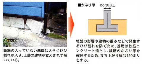 基礎は鉄筋コンクリート造、立上り幅は150㎜以上とする