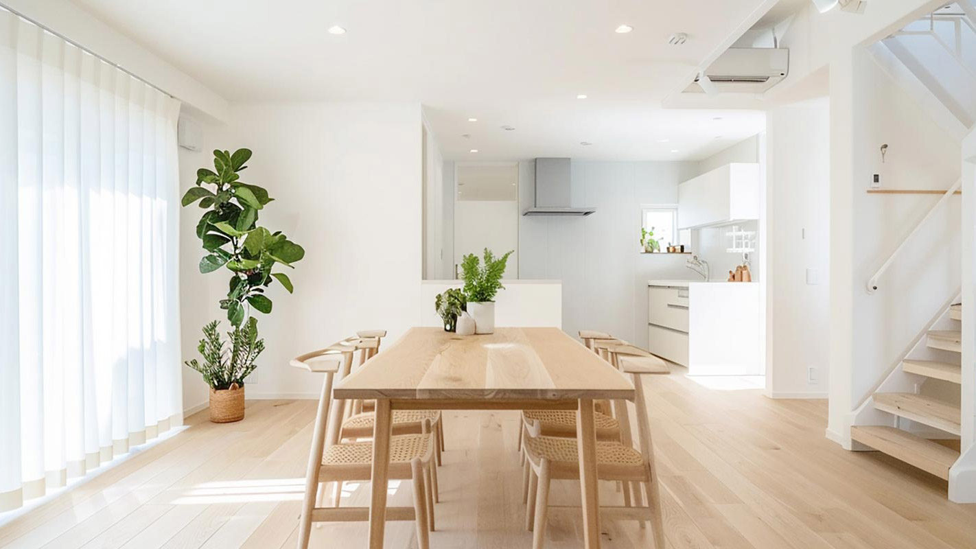 鉄骨外断熱住宅です。基礎から屋根まですっぽりと断熱材で覆うことで高い断熱効果と快適な居住空間を作ります。